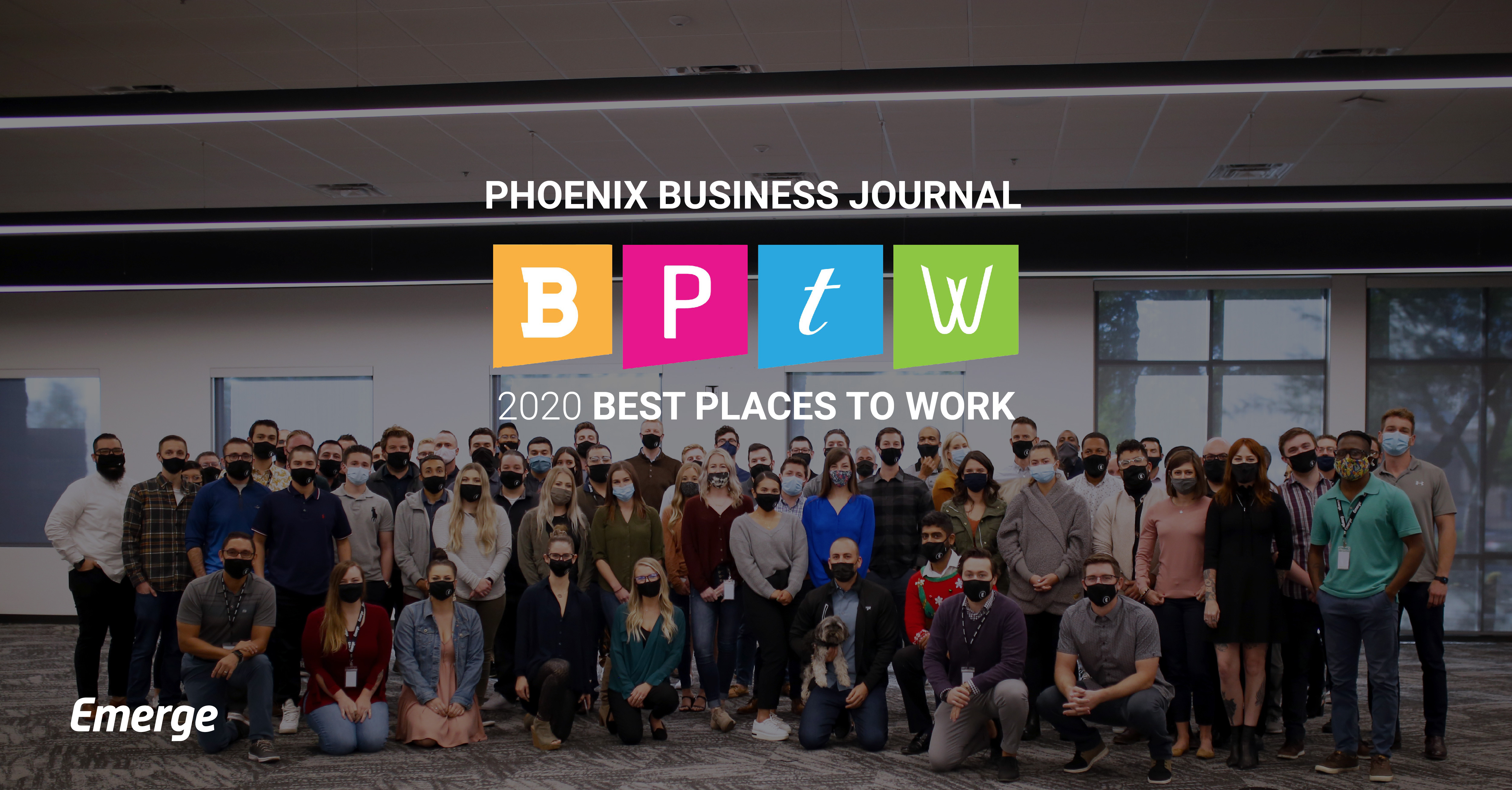 SCOTTSDALE, Ariz.--(BUSINESS WIRE)--#bestplacestowork--Emerge ranks fifth on the Best Places to Work in the Valley 2020 list by the Phoenix Business Journal. The rankings take into account confidential surveys of local Phoenix-area employees, analyzing aspects of company culture like communication, managerial effectiveness, team dynamics and trust in leadership to gauge overall employee affinity.