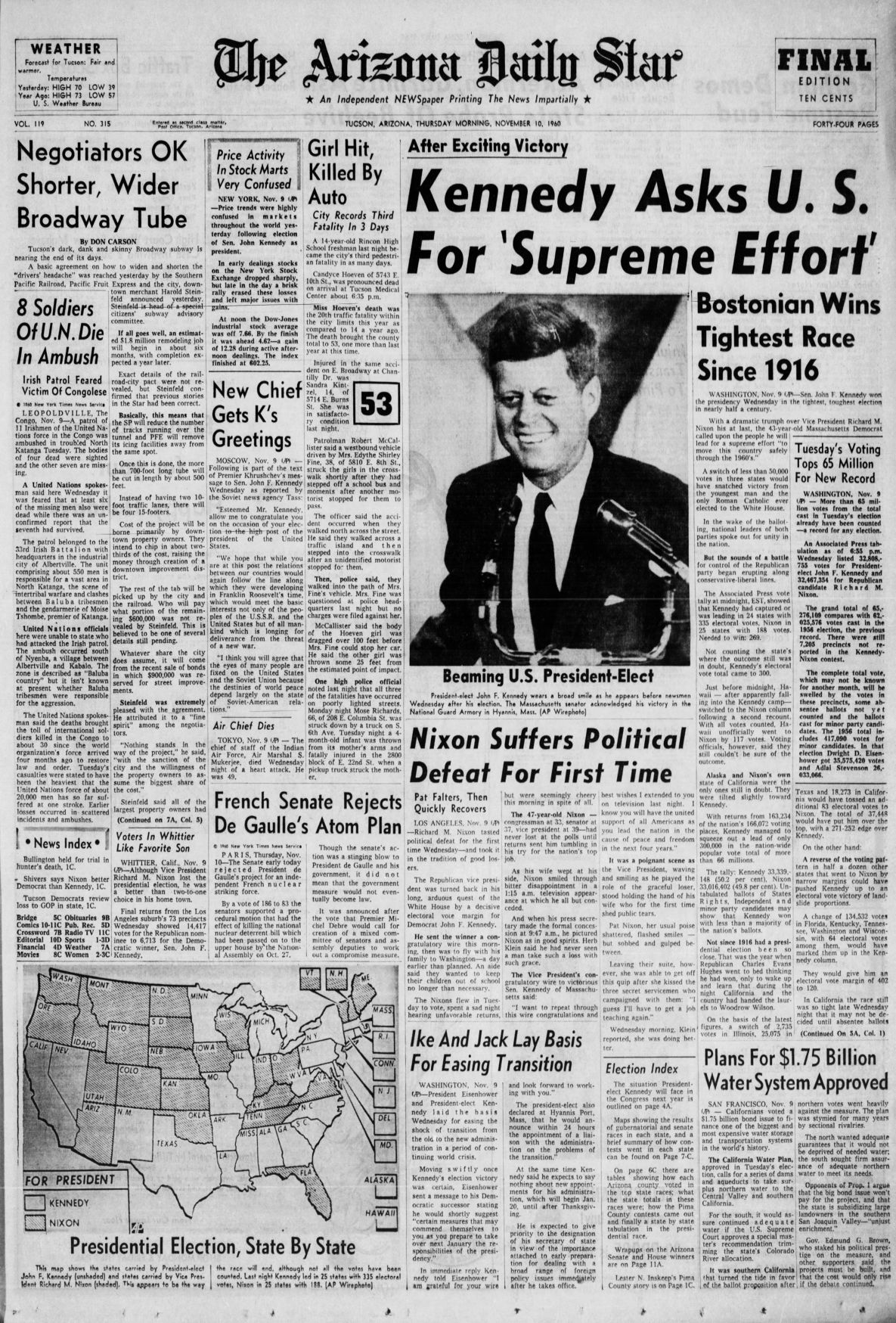 Senator John F. Kennedy at the Sunday Evening Forum, sponsored by the Catalina Methodist Church in Tucson on Feb. 24, 1958. When asked if a man his age could be president, Kennedy, at the time age 42, responded, "I don't know about a 42-year-old man, but I think a 43-year-old man can." Tucson Citizen file photo