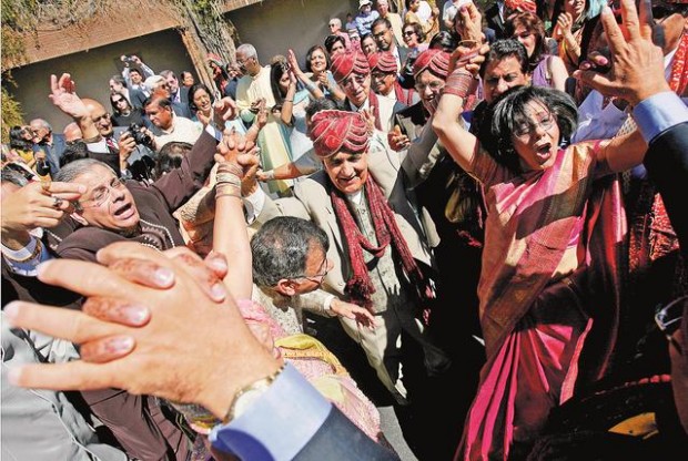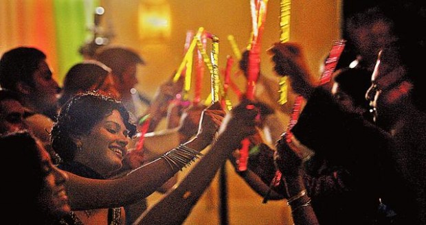 The stereo blasts Bollywood music again and many of the 170 guests begin dancing barefoot on the entryway rug. Rachna, grinning all night, declares the evening a success.
